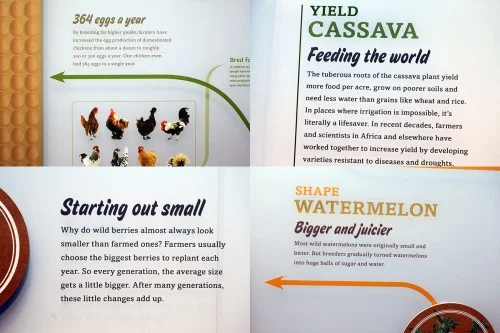 This exhibit literally walks you through so many details on the history and evolution of food – it’s amazing.  The initial portion details how farming practices have changed, evolved to fit while simultaneously shaping our food needs.  I was amazed at how chicken and eggs have increased production for our demand.
