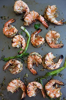 GRILLED SHRIMP WITH KIMCHI-MISO BUTTER