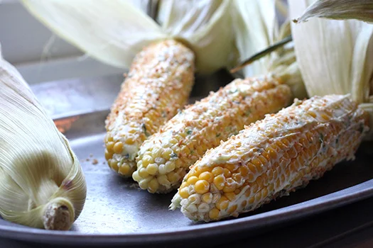 CORN WITH GREEN CHILI BUTTER & COCONUT