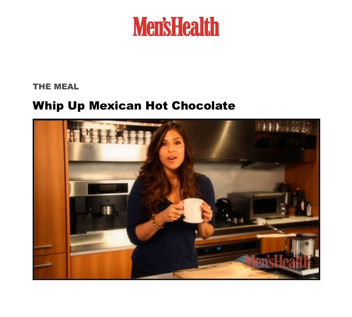 Men’s Health featured my recipe for Mexican Hot Chocolate in a video just in time for Valentine’s Day.